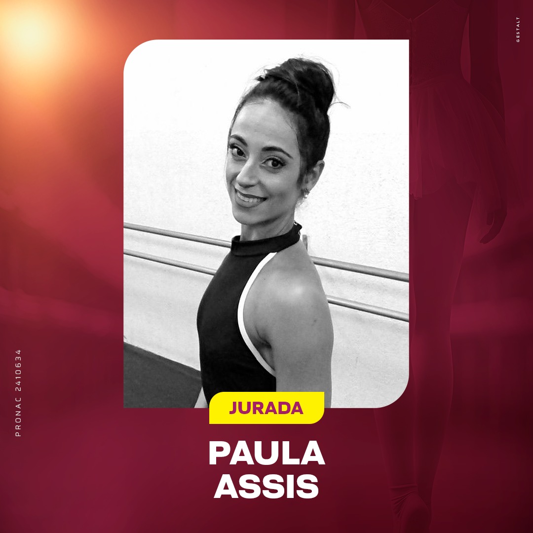 Paula Assis Oliveira é um dos grandes nomes da dança brasileira. Com uma carreira marcada pela excelência e versatilidade, foi, por mais de uma década, primeira bailarina da Companhia de Dança SESIMINAS, onde também atuou como professora e ensaiadora substituta. Ao longo de sua trajetória, brilhou em papéis de destaque do repertório clássico nos principais palcos do país e assumiu um papel fundamental na formação de novos talentos, lecionando em instituições renomadas como o CEFART e a Fundação Clóvis Salgado, além de projetos próprios como o Paula Assis Arte e Movimento.